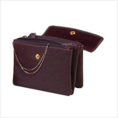 Fantastic leather jewllery case able to satisfy many needs. 3 individual zippered pockets that are linked together and have added flap over snap closure. Never loose your little valuables while travelling again! Available in Deep rich Purple and a beautiful red color. These cases were previously sold at very high end department stores. Felt lined under flap. Could even be used a a clutch on a girls night out! 4.5"L X 4"H X 1"W