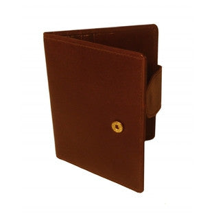 Leather passcase with 6 credit card or business card slots, tab closure and constructed of glazed cow hide leather. Available in Cognac.